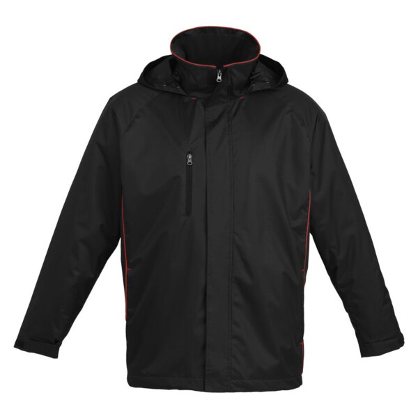 • Concealed front zip with storm placket